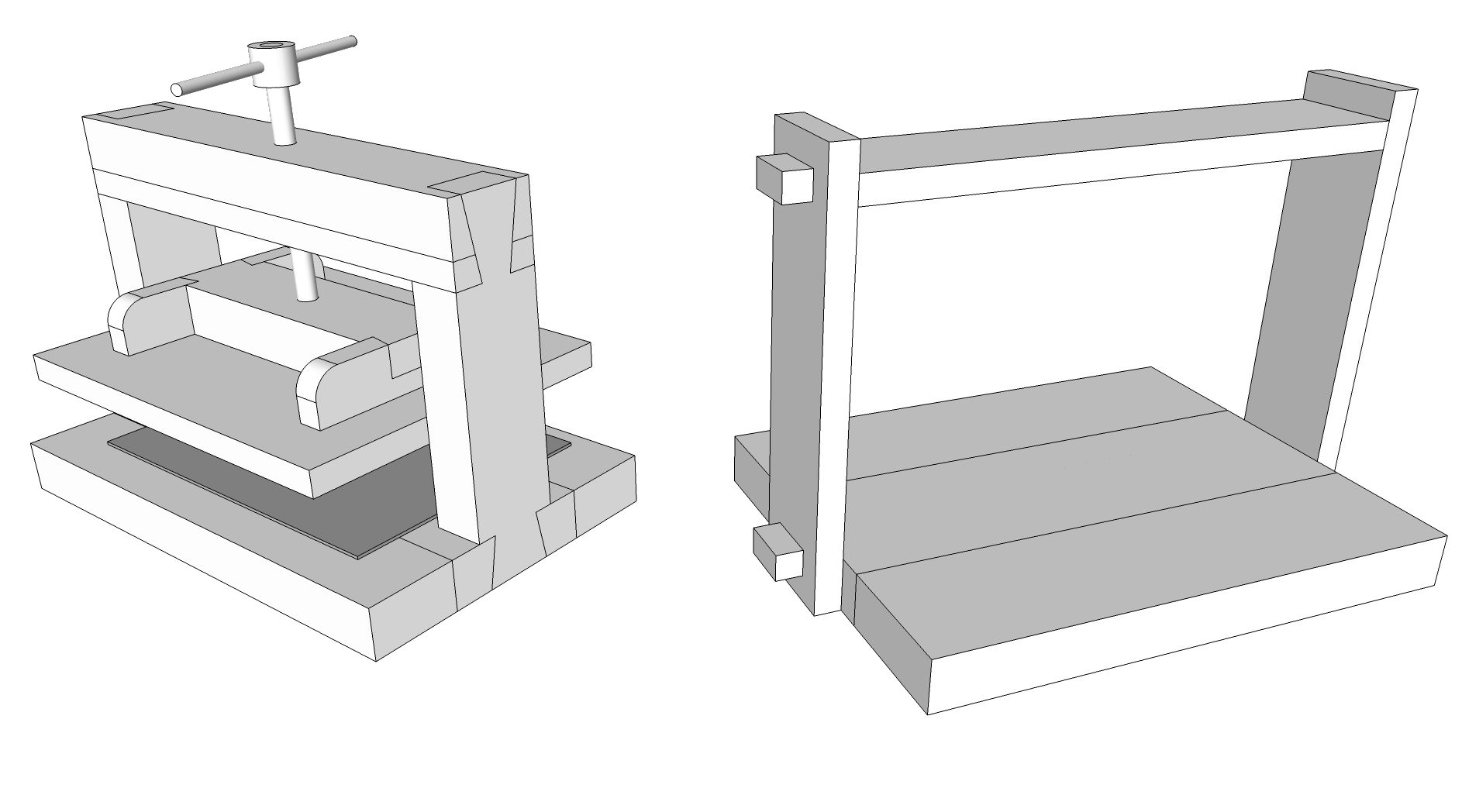 The platen for my simple press will be simple: probably made from MDF with some Blackbutt strengtheners. I didn’t put it into the new SketchUp because I was lazy. I bought one of these shoulder vises from Carbatec, and I am going to use that for the press. I am thinking of repainting the cast bits in black.
