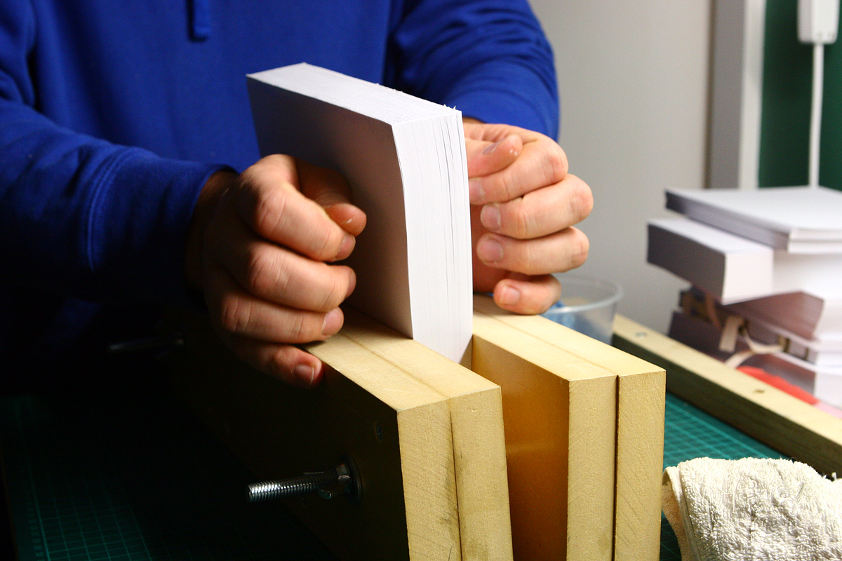 Pressing Out Air Published May 11, 2012 at 1200 × 800 in Adhesive Binding is Perfect ← Previous Next → Press the air out from between the pages, first starting at the bottom and working your way up to the top
